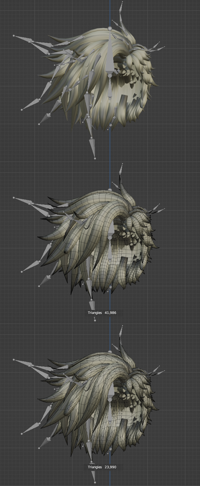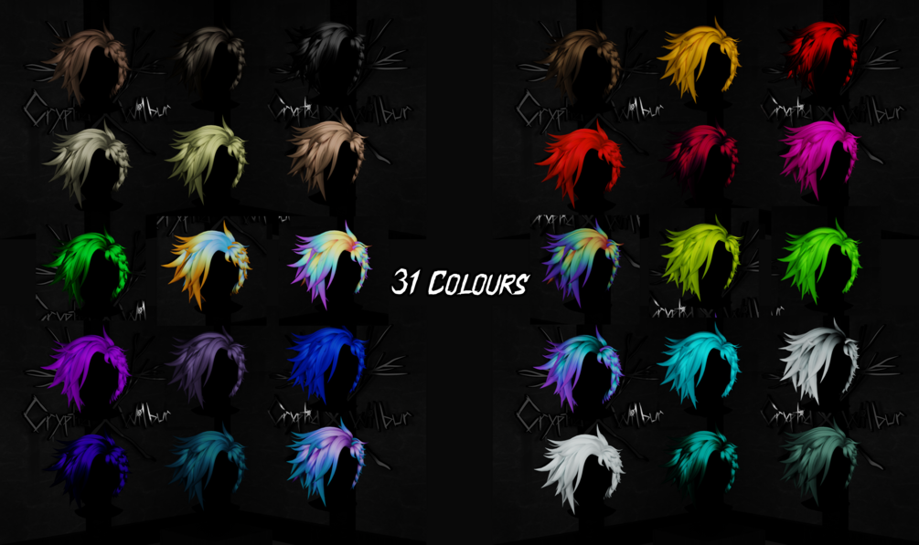 From scratch Punk/emo styled undercut. High poly (41.9k) and low poly (23.9k) as well as 31 hair colours and 4 gradients for emissions.
