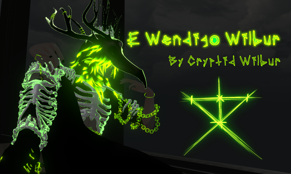 A sheep in wolf's clothing; he looks like trouble but couldn't hurt a fly, most of the time anyway. Our Wendigo friend here is trying his best to fit in with the humans, only taking a nibble from time to time. He even has a hue shift and emission levels slider to show off your favorite colours! Cuddle up with friendos and try out the new Physic bone system! Go for a cozy look with a hoodie and shorts, and tuck away your antlers. Or be the true Wendigo king, bones showing and all! Be the Spooky dude you've always been deep down inside, but now on the outside.